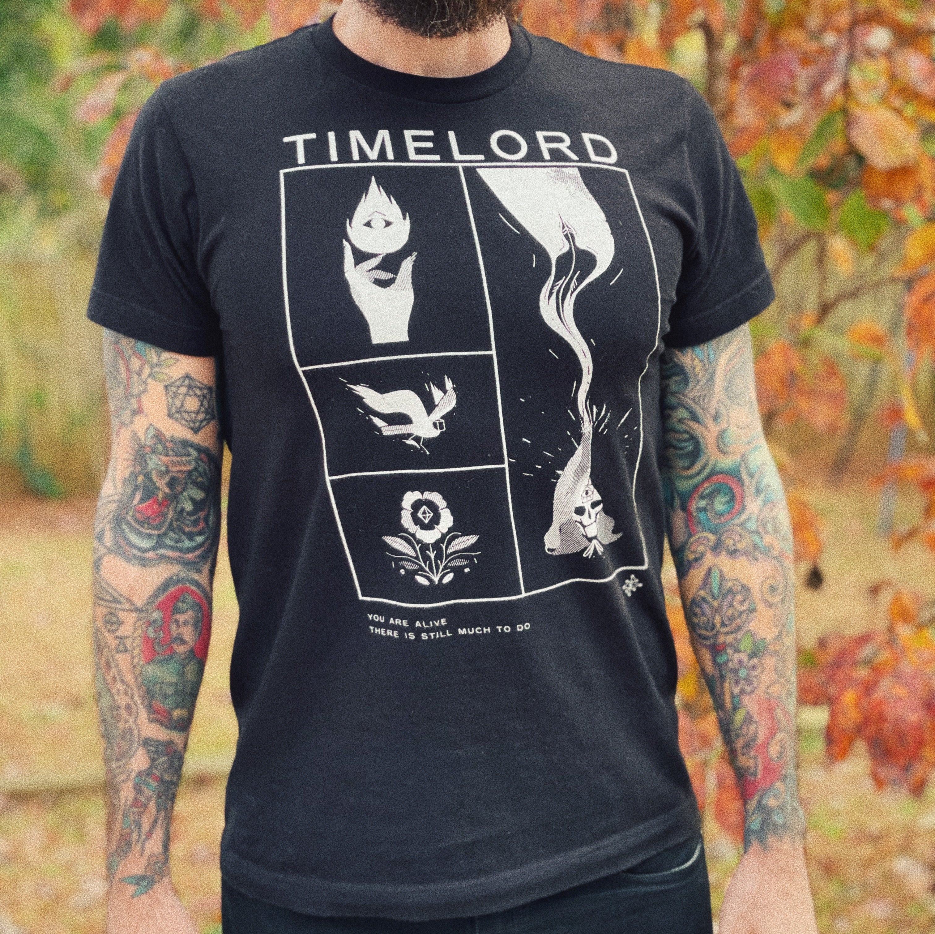 Adorn your corporeal form in the ultra-soft white on black imagery of the ancient ones and the might of the Timelord –created by Reece Parker. Seal the Timelord’s mark upon your denim jacket with an iron-on embroidered patch. Join the Sacred Order of the Battle Axe with the official black and gold enamel pin.