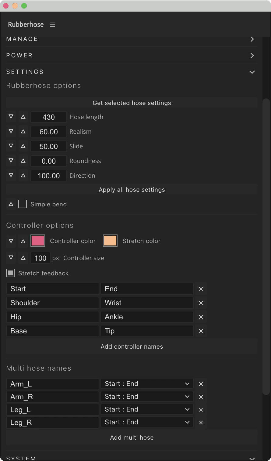 Settings are often set-and-forget, but in Rubberhose you have the freedom to push and pull settings from hoses almost like a global copy and paste.