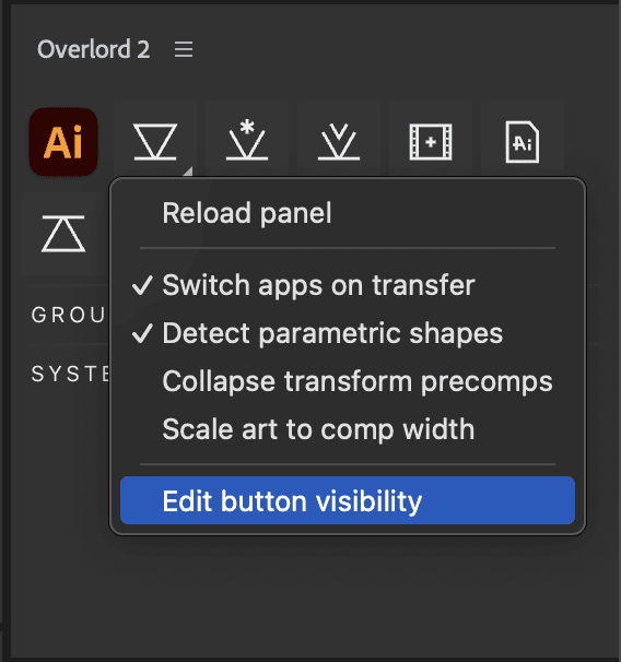 Click to import the current Illustrator file into the open After Effects comp as layers. This streamlines the process to remove several steps and create a more Overlord-like behavior for when importing an Ai file is necessary or faster for your comp.